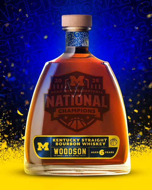 WOODSON WHISKEY MICHIGAN WOLVERINES 2026 NCAA BASKETBALL NATIONAL CHAMPIONS COMMEMORATIVE BOTTLE - $74.99 (750ML)